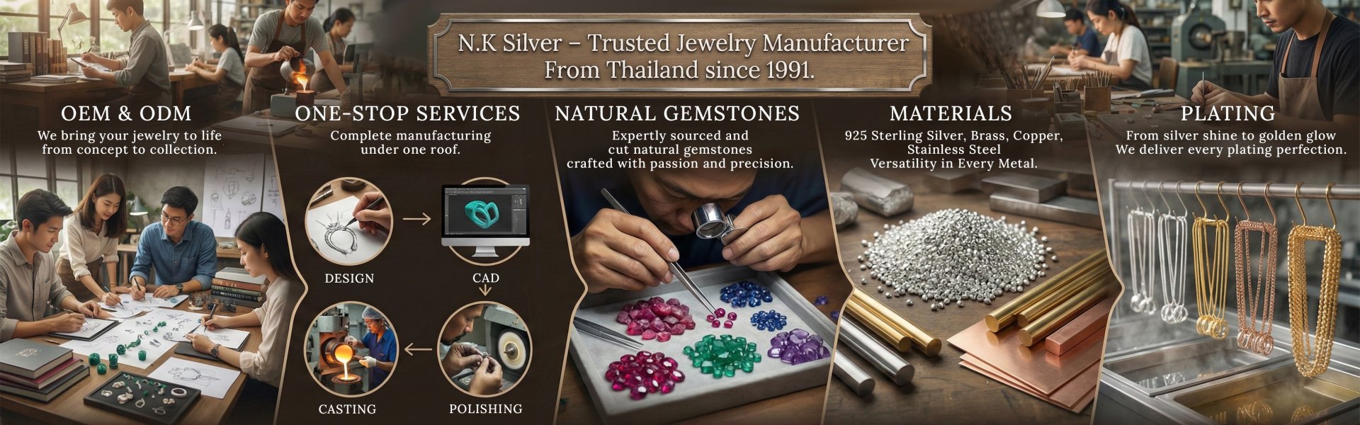 Exquisite jewelry designed by N.K Silver's professional Marketing and Design team, with tailor-made creations crafted to perfection.
